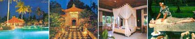 | | Property Type: | | Villa & Bungalow | | Star Rating: | | 4 Star | | |  | Bali. The island of the gods. Let the authentic Balinese entrance greet you and our professional staff serve you with natural warmth and pleasant hospitality. | | |   | Guest Rooms The resort offers 94 Bungalow Deluxe and 6 Bungalow Suites with total of 100 Bedrooms. The bungalows are designed in Balinese traditional architecture and set amidst the lush tropical gardens. Each Bungalow on the lower floor has a private Veranda facing lotus ponds and the upper floor has its private balcony surrounded by the Bougainvilleas. All rooms are designed to make every one feels at home with Balinese wooden and rattan furniture and large private bath room with bathtub and shower. -