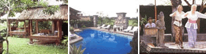 US$5.00/person. Try your hand at playing some of the unique musical instruments of Bali and exploring the diverse variety of Balinese sounds such as gamelan and angklung. Of course, your pace and your schedule are your own decisions at Taman Harum Cottages. The opportunities are there without being imposed upon you. Whether you participate or just relax and watch this fascinating way of life go by (from your comfortable distance), that is your prerogative. Just be assured, whether your personal mandate is to do as little as possible or to try as much and as often as you can to become part of the culture of Bali, THIS HOTEL IS FOR YOU. back to top | |  | Places of Interest - Less than 10 minutes drive to Ubud Town, Bali's artistic centre, paintings, fine arts, Museum, Temples, Balinese dancing performance, White water rafting, cycling, trekking.